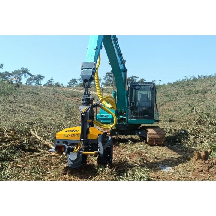 Гусеничный древовал (харвестер) Sunward SWE365ETH выполнен на базе экскаватора Sunward SWE365. Детали конструкции корпуса карьерного типа – прочные и долговечные, обеспечивают длительный срок службы. Длина гусениц 4447 мм подходит для передвижения в лесных районах.